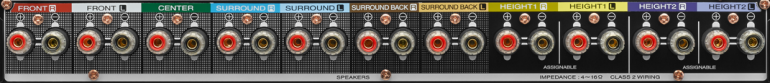 These are, quite literally, what you wire your speakers into. Each speaker will have a single cable running from it, split into two parts, which usually has to be bought separately to the speaker. What you’ll do here is wire each speaker to its corresponding section - so front left to front left, center to center, surround left to surround left etc. If you need help on setting up a surround system, you can check out this little guide we did here.