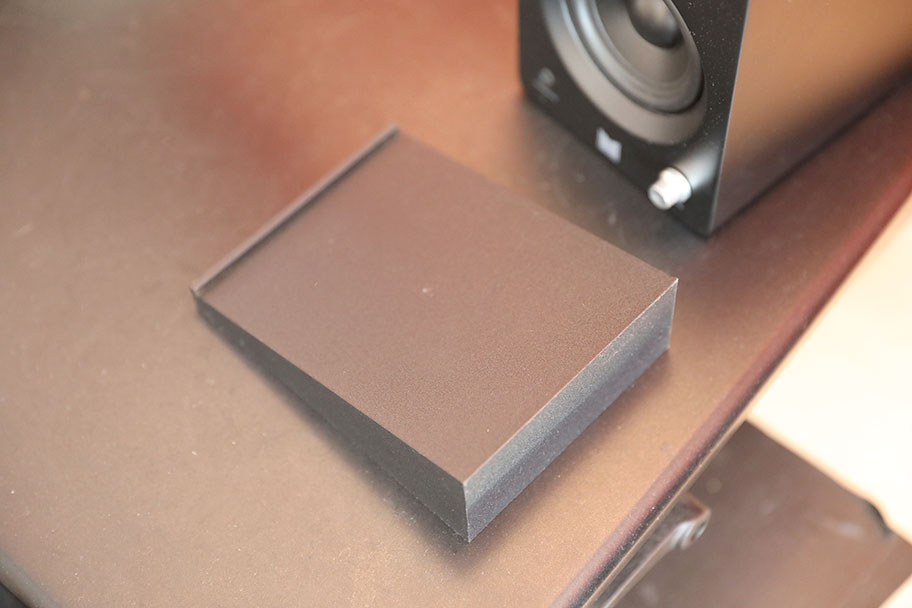 With the Monoprice MM-3s, you get at least one particularly clever accessory. Or perhaps that should be two. Included with the speakers is a pair of thick, textured plastic stands, precisely angled so that the speakers will be pointing directly at your ears when rested on top of them. It’s a smart and forward thinking inclusion. The stands not only builds on the already excellent soundstage of the MM-3s, but make it even easier to catch all that excellent audio detail. Fair warning: you need to be careful with the stands. Unlike the speakers, the edges are sharp, and we poked ourselves on them more than once. But they definitely elevate the audio quality and we highly recommend using them.